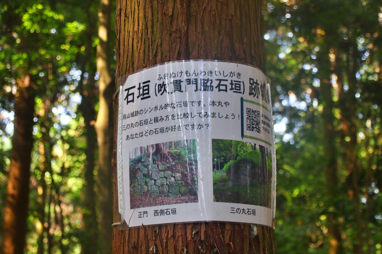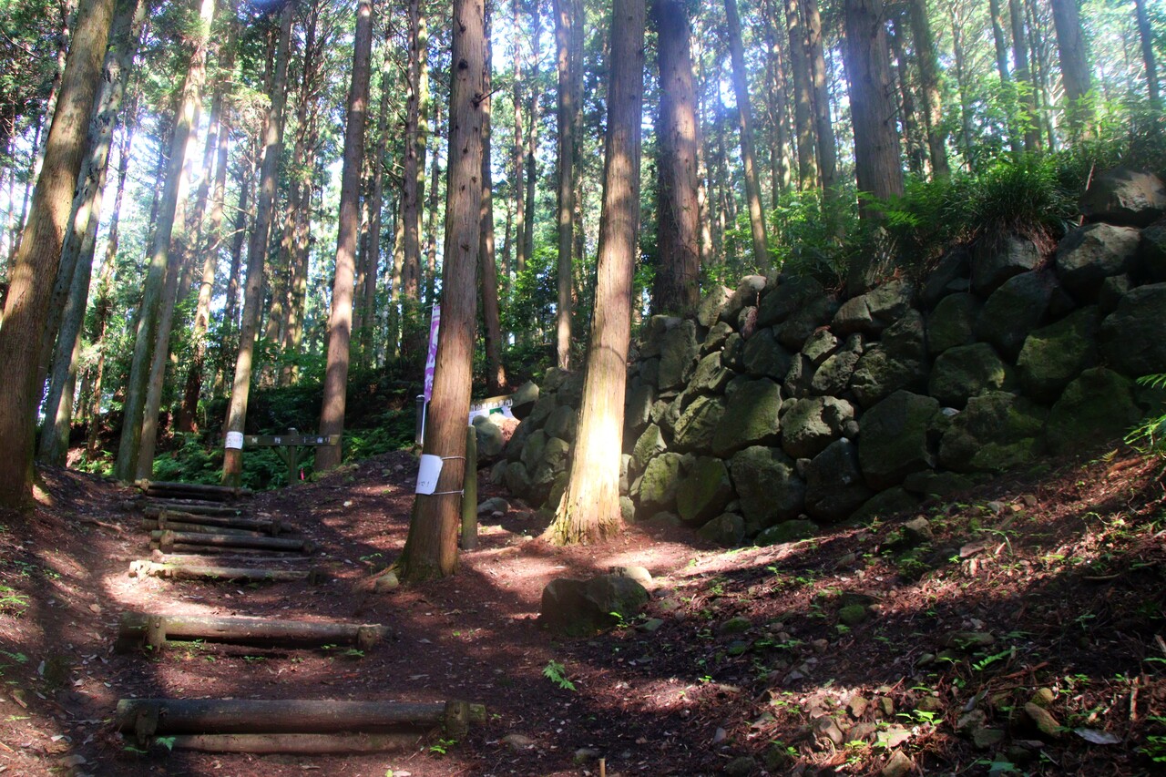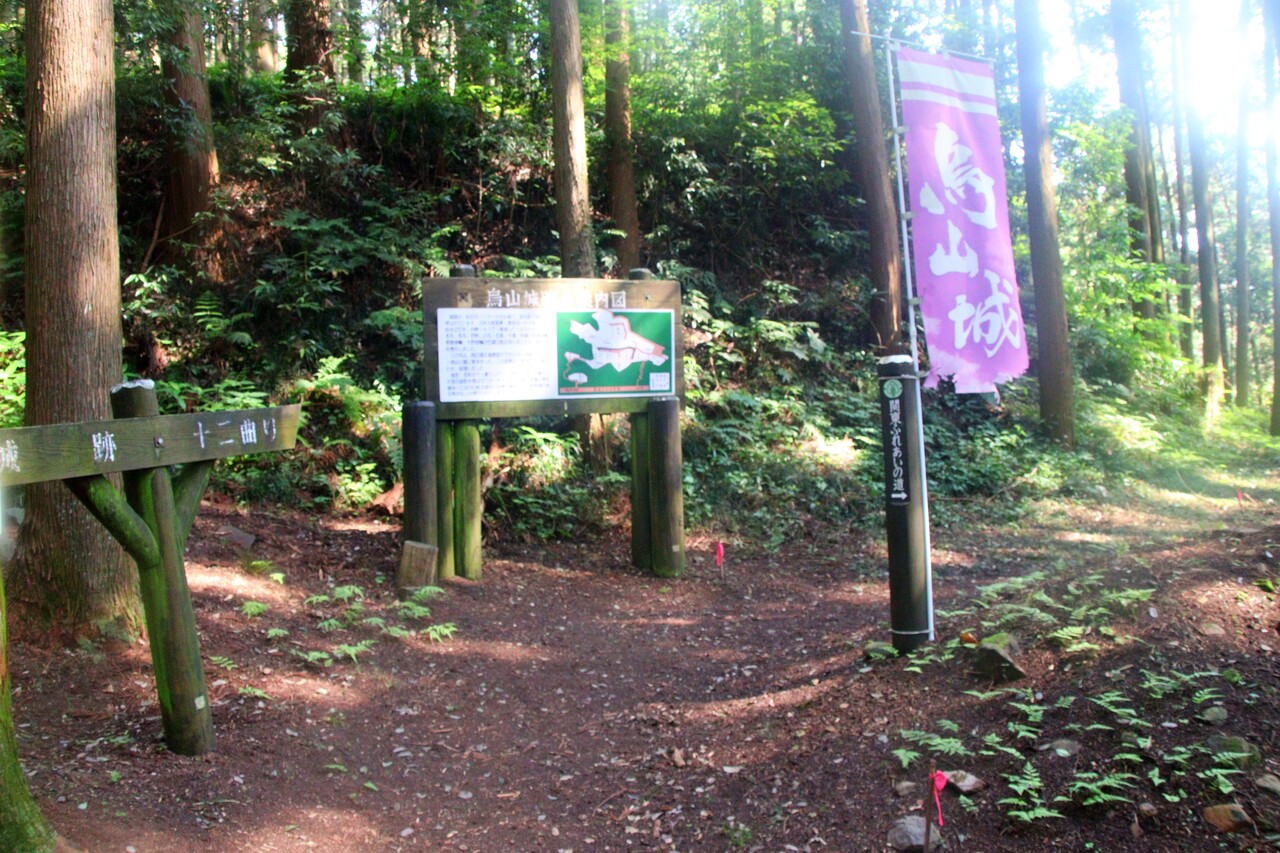続いて烏山城跡へ。 現在、城跡は杉林に覆われているが、空掘・土塁・石垣などの各遺構が良好な状態で既存し、また、八雲神社北側から毘沙門山・城山に至る遊歩道が整備されている。 (webより)