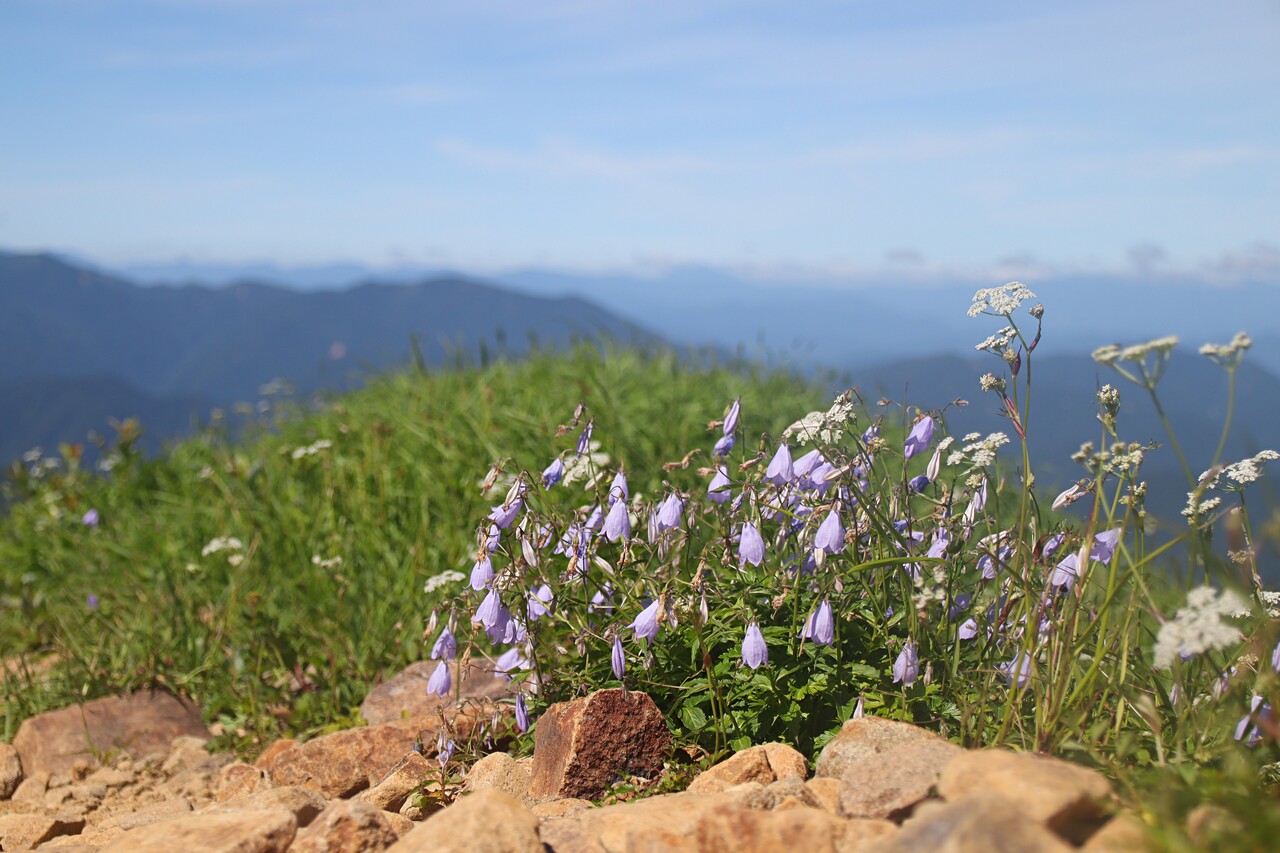 ヒメシャジン咲く岩稜は撮影をしながらゆっくり下りる。