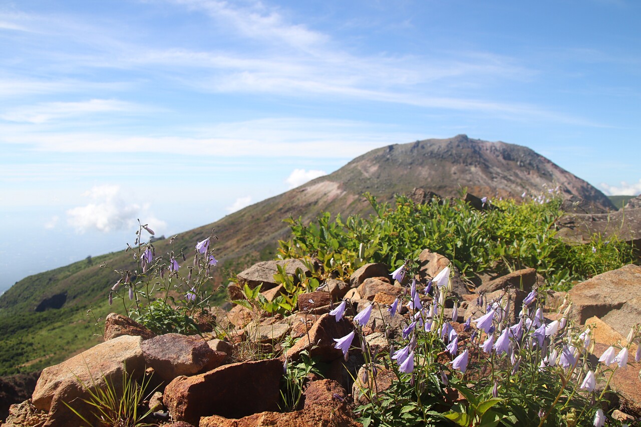 那須岳のヒメシャジンは朝日の肩手前の岩稜で見頃を迎えていました。