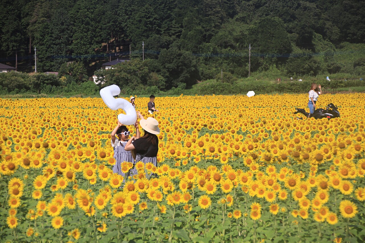 8月9日(土)、「道の駅ましこ」近く(栃木県益子町上山)のひまわり畑へ行って来ました。 約5ヘクタールの広大な田んぼに咲く、100万本のひまわりが見頃を迎えた。 こちらを訪れるのは今日で2度目だけど、随分前の事なので余り覚えてない💦 今回は「道の駅ましこ」から往復約1.6㎞の道程を歩いたが、会場広場には臨時🅿も設けられている。 その後、近くにある標高165mの根本山(真岡市東部)ピークハントのおまけ付き。