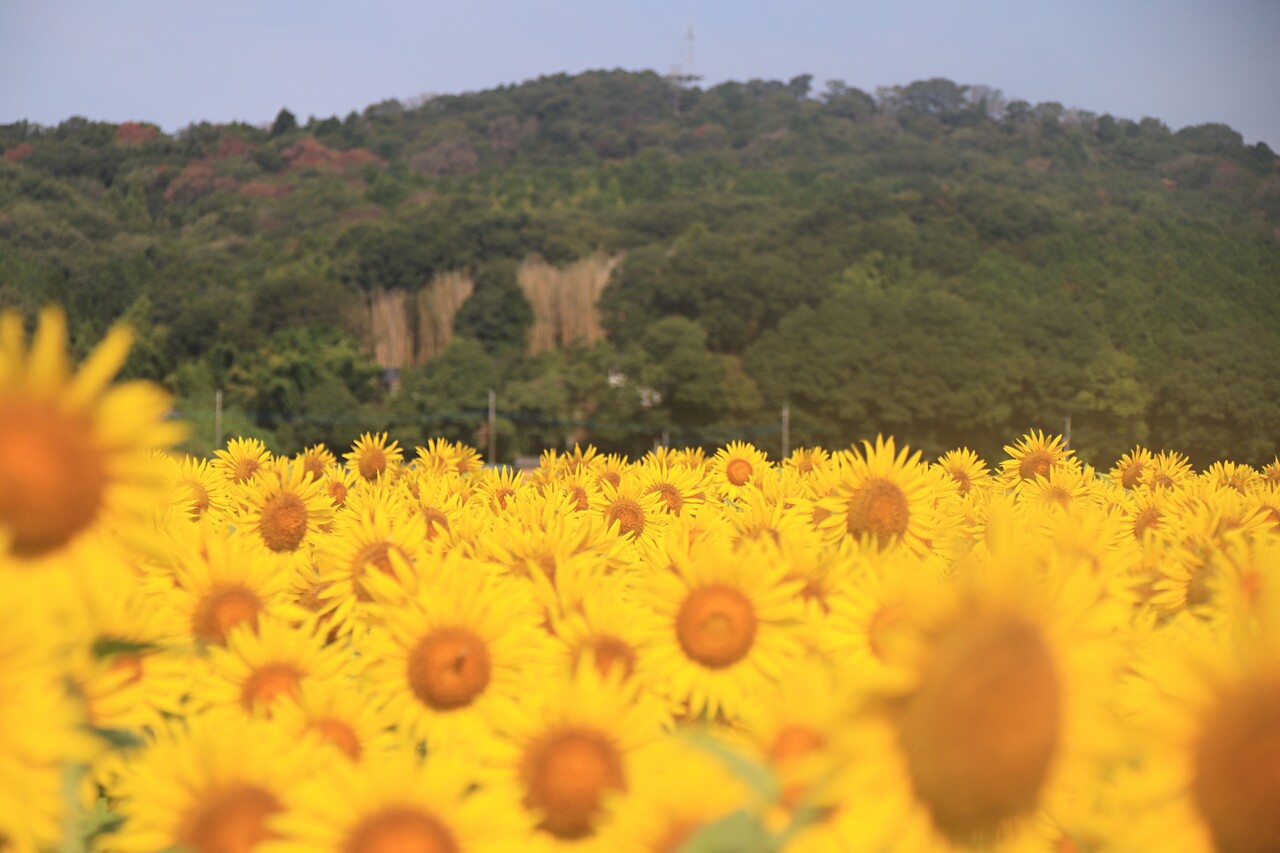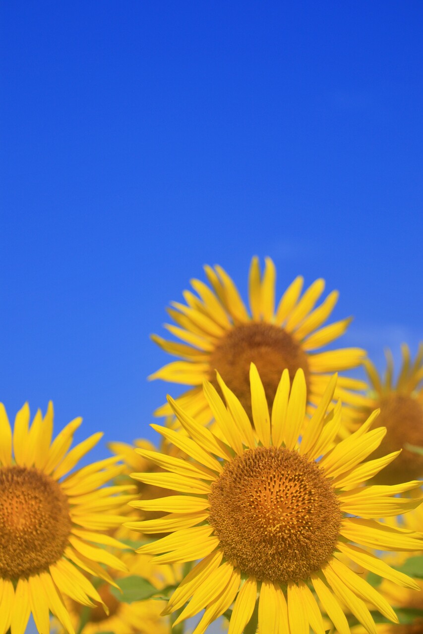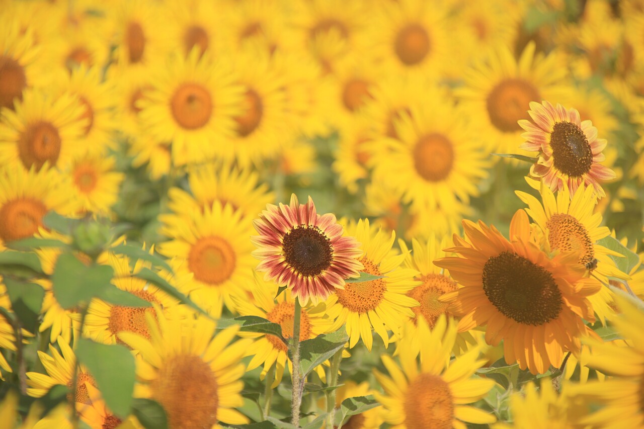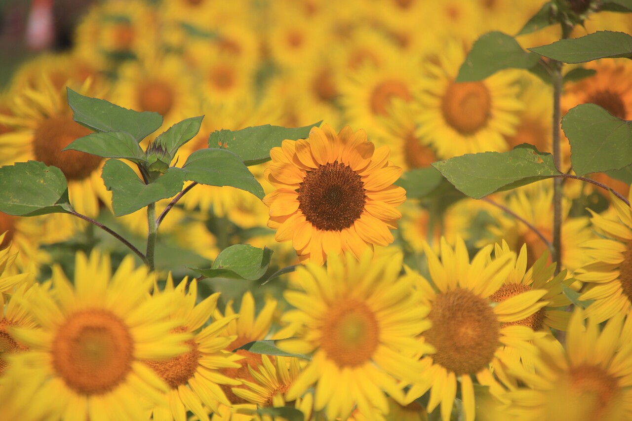 ひまわりたちが一斉に、太陽の笑顔を見上げている🌞🌻