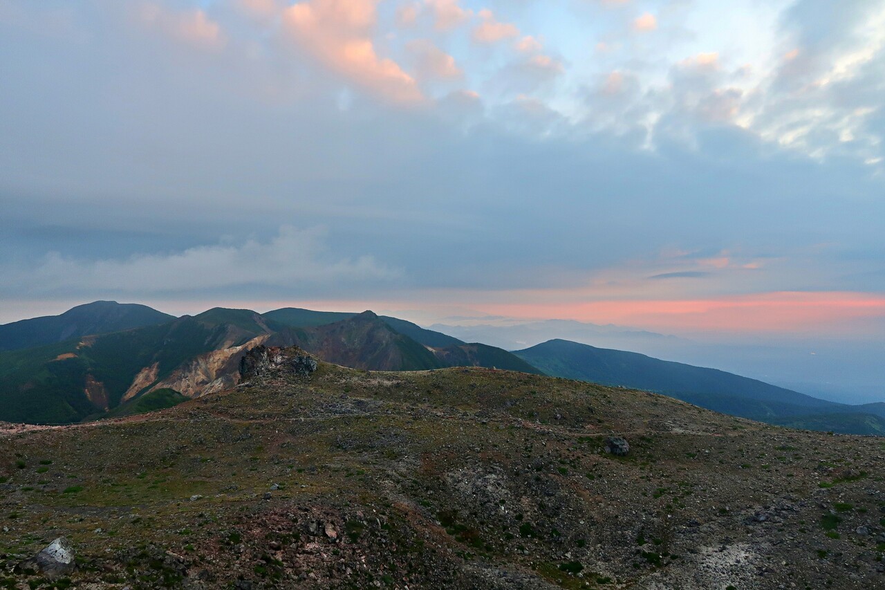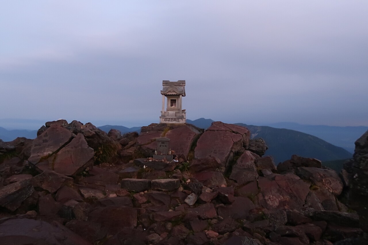 茶臼岳山頂には日の出待ちの登山者が数名。