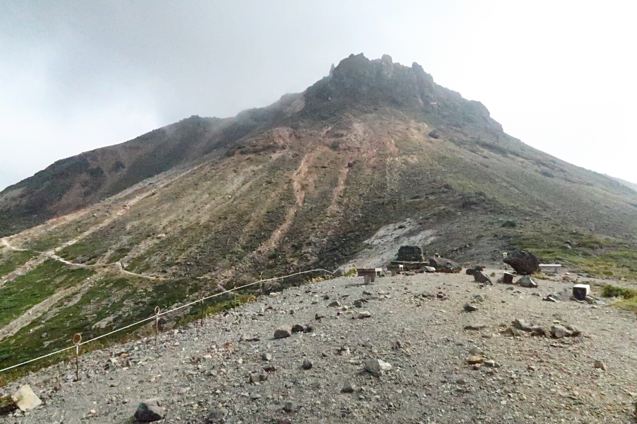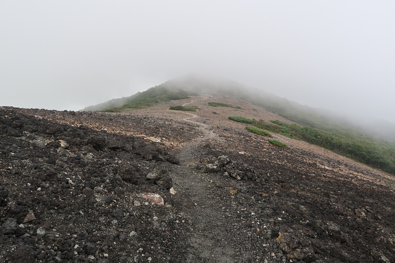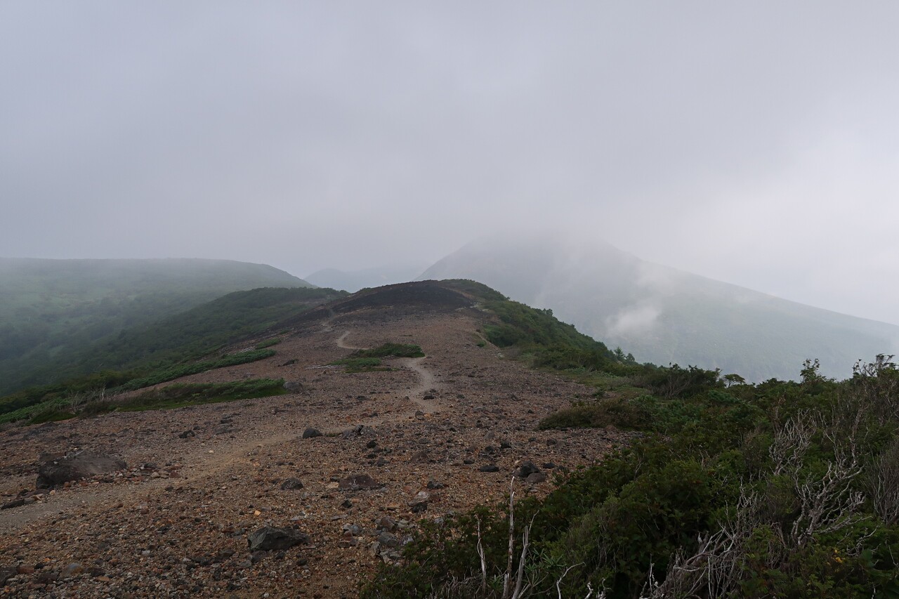南月山からの茶臼岳はガスで薄っすら。