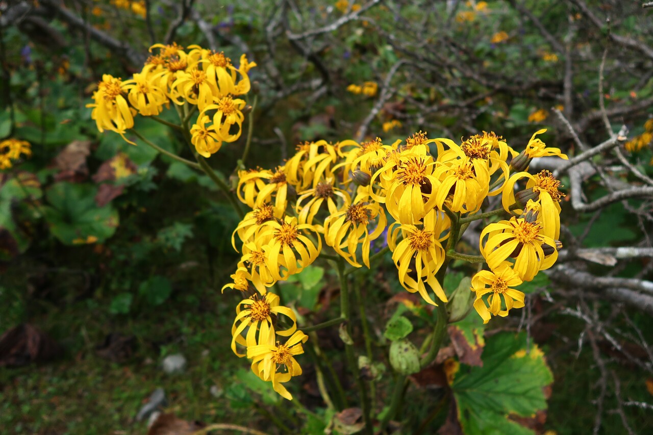 牛ヶ首から日ノ出平まではヤマトリカブト、マルバダケブキのお花畑。