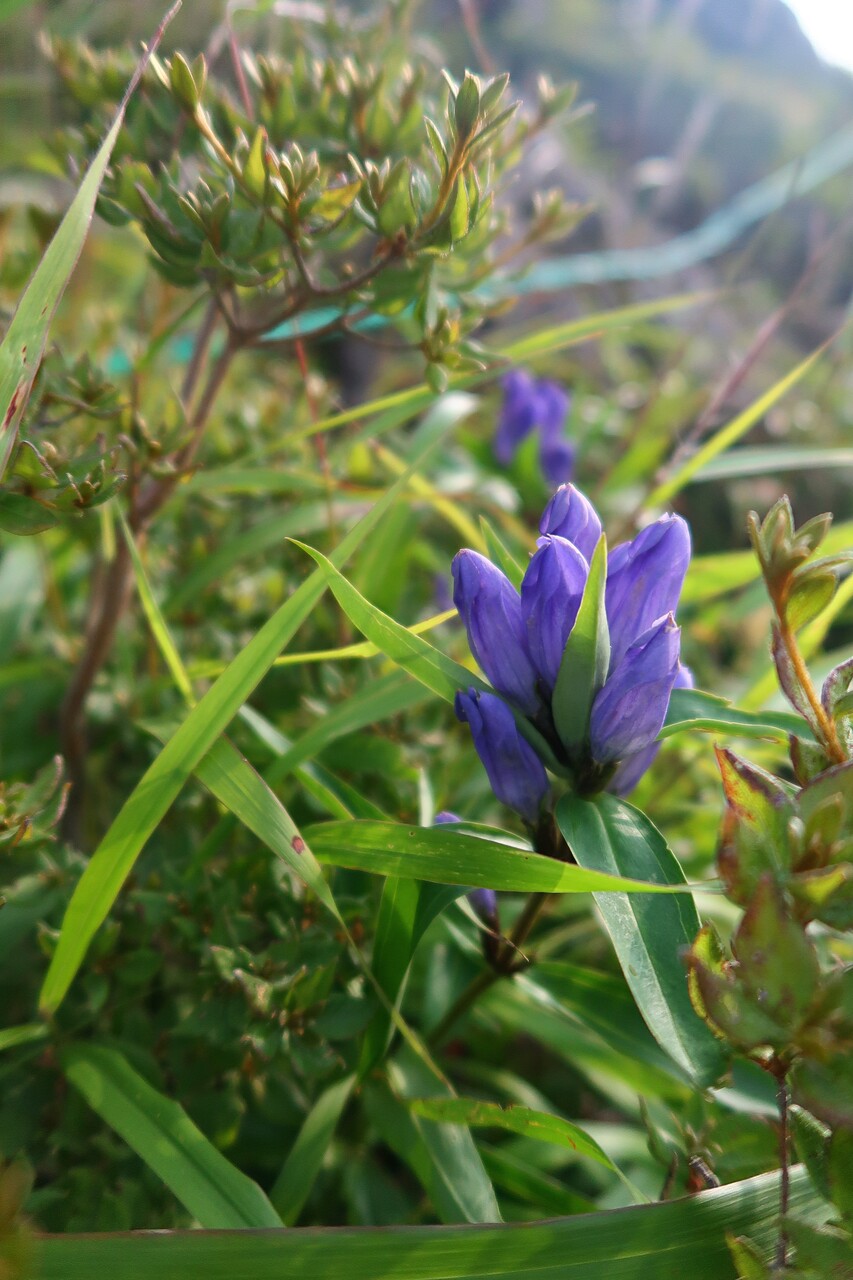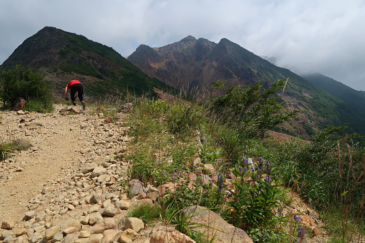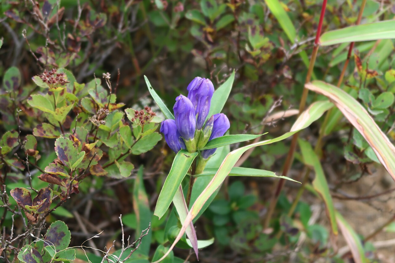 ロープウェイ駅分岐から牛ヶ首方面へのトラバース道に咲くオヤマリンドウ、エゾリンドウ。