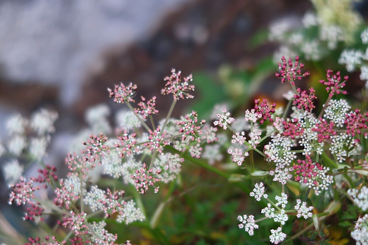 のんびり休んで下山開始。 線香花火のようなシラネニンジン。