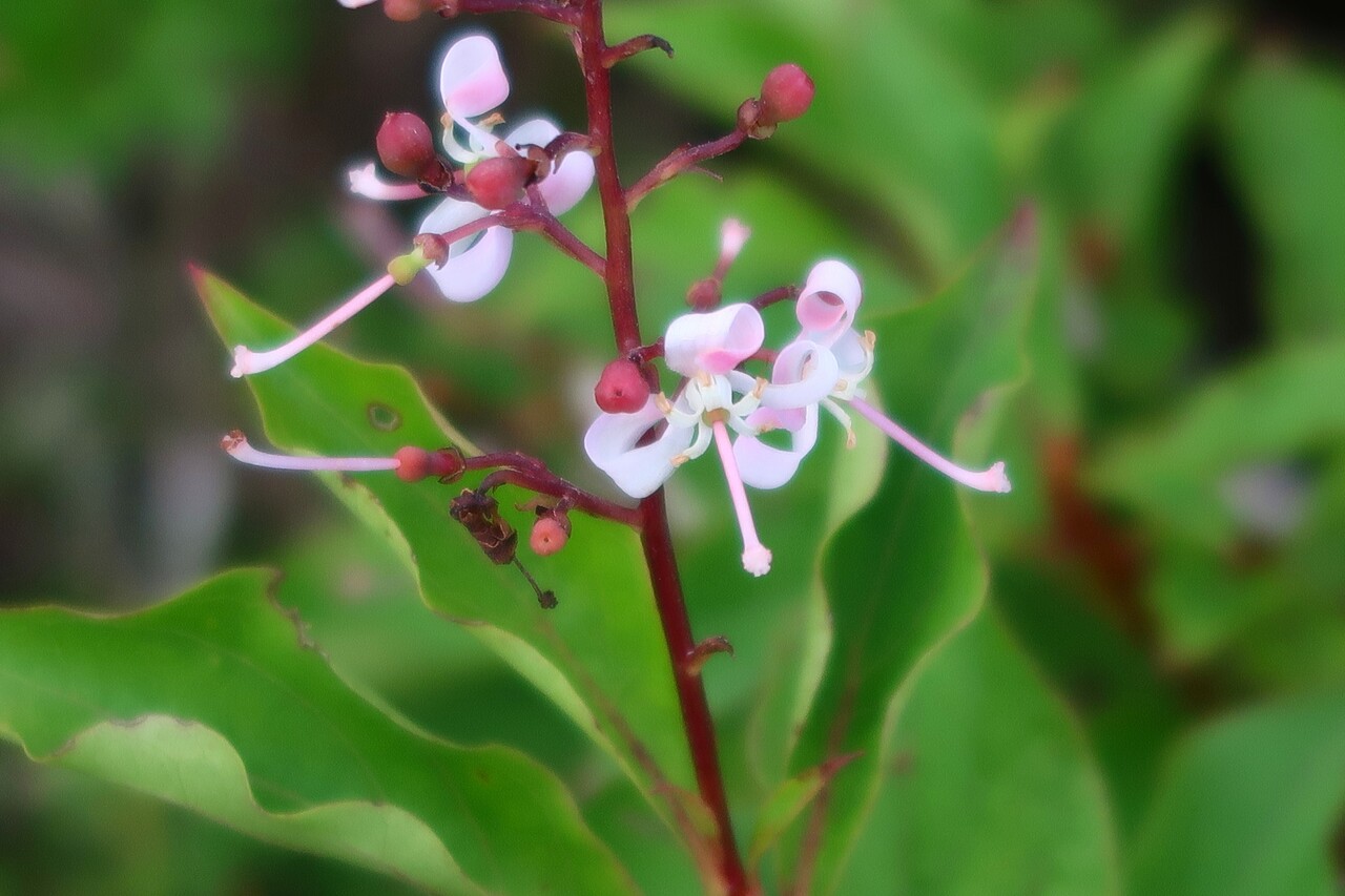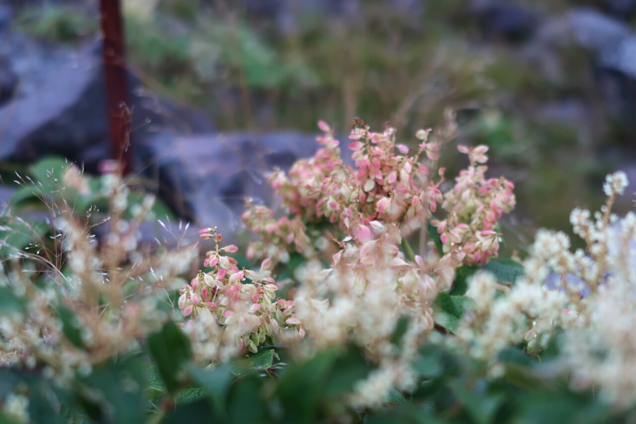 お鉢周りの登山道に咲くウラジロタデ。