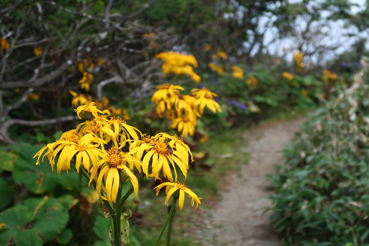 お目当てはイワインチン、ヤマトリカブト、マルバダケブキ、リンドウなど、晩夏~初秋を彩る花々である。