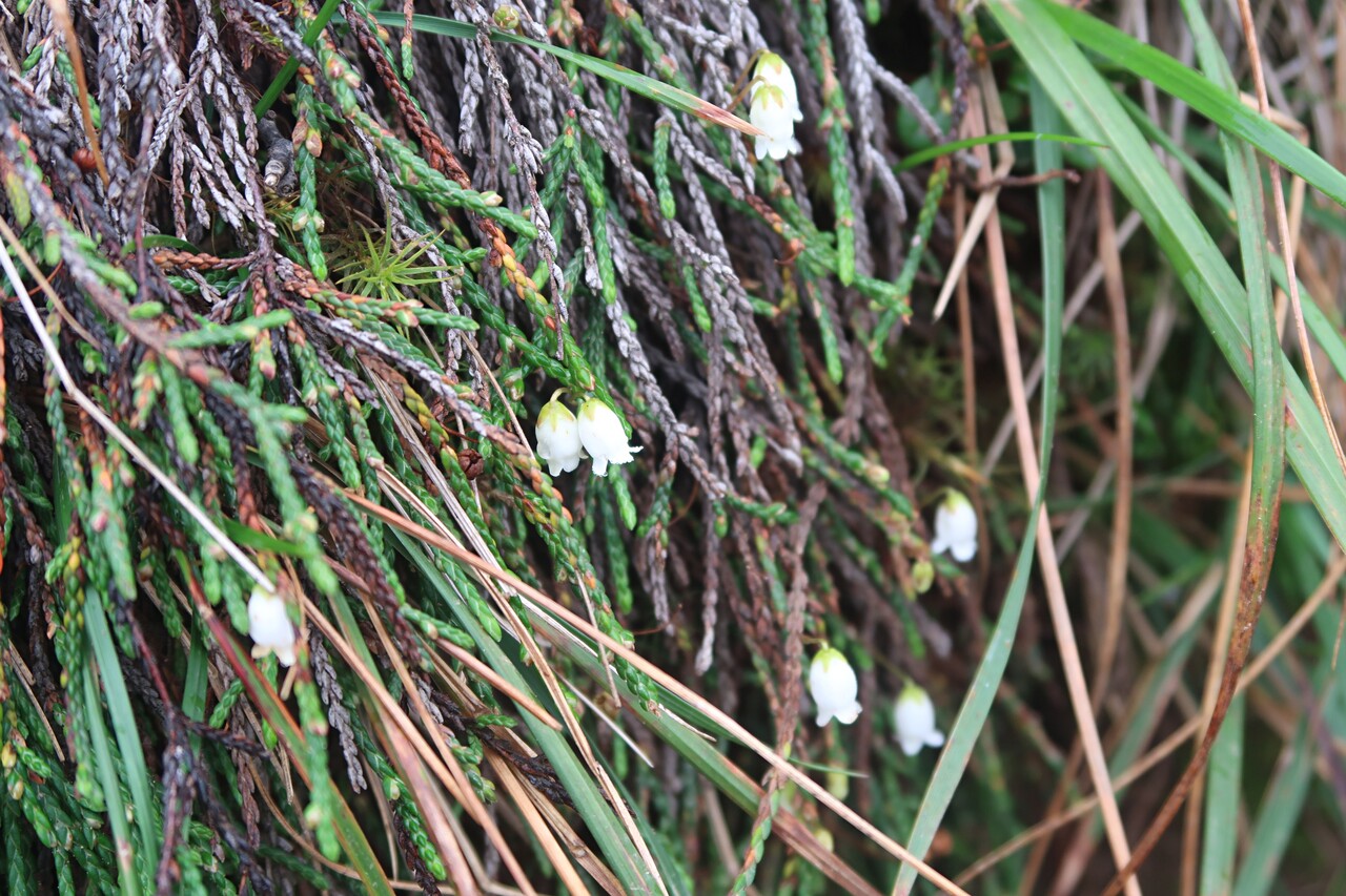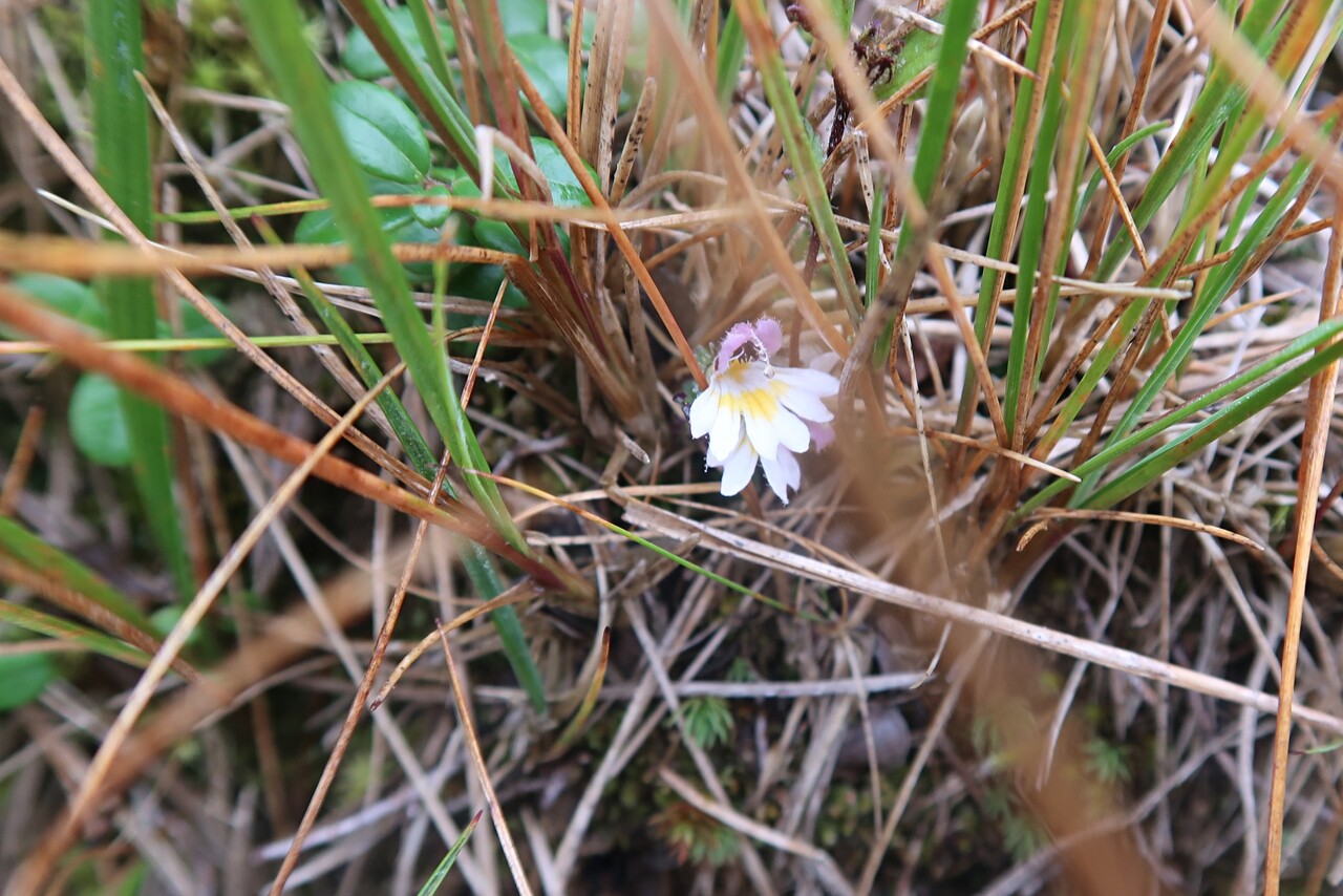 気を取り直して東天狗岳に戻り、進むべき方向をしっかりと確認して中山峠方面の登山道へ。 直下の岩場には厳しい環境下に咲く小さな高山植物の咲き残りが目を惹く。 まずはイワヒゲ・・・こんな状況でも花撮りスクワットはやめられない🤣