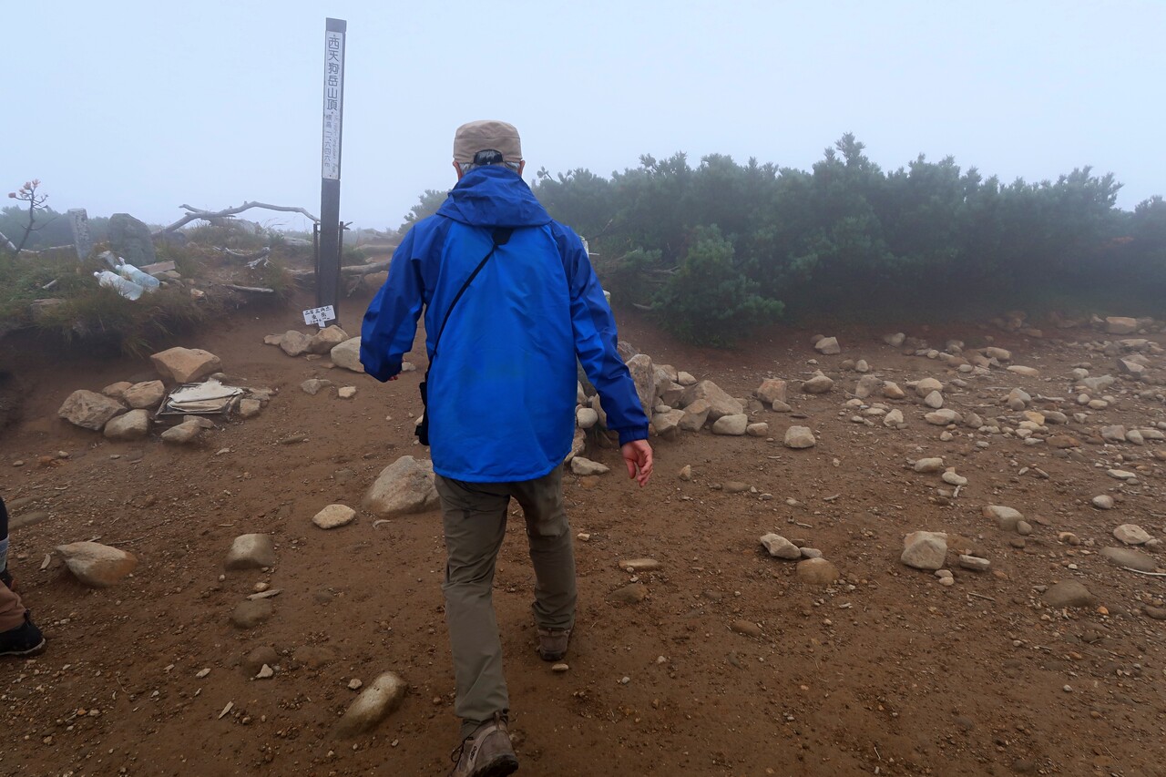 で、ここでやっちまいました💦 本当は中山峠に向かうつもりが、先行者につられて根石岳方面へ行ってしまったのだ。 ガスで視界不良は言い訳にはなりませんね。 どんな状況でも進むべき方向の確認を怠っては駄目です🙅♂️ まあ、このまま根石岳に行っても良いのだが、この悪天候では登頂しても意味が無いので戻る事にしましょう。