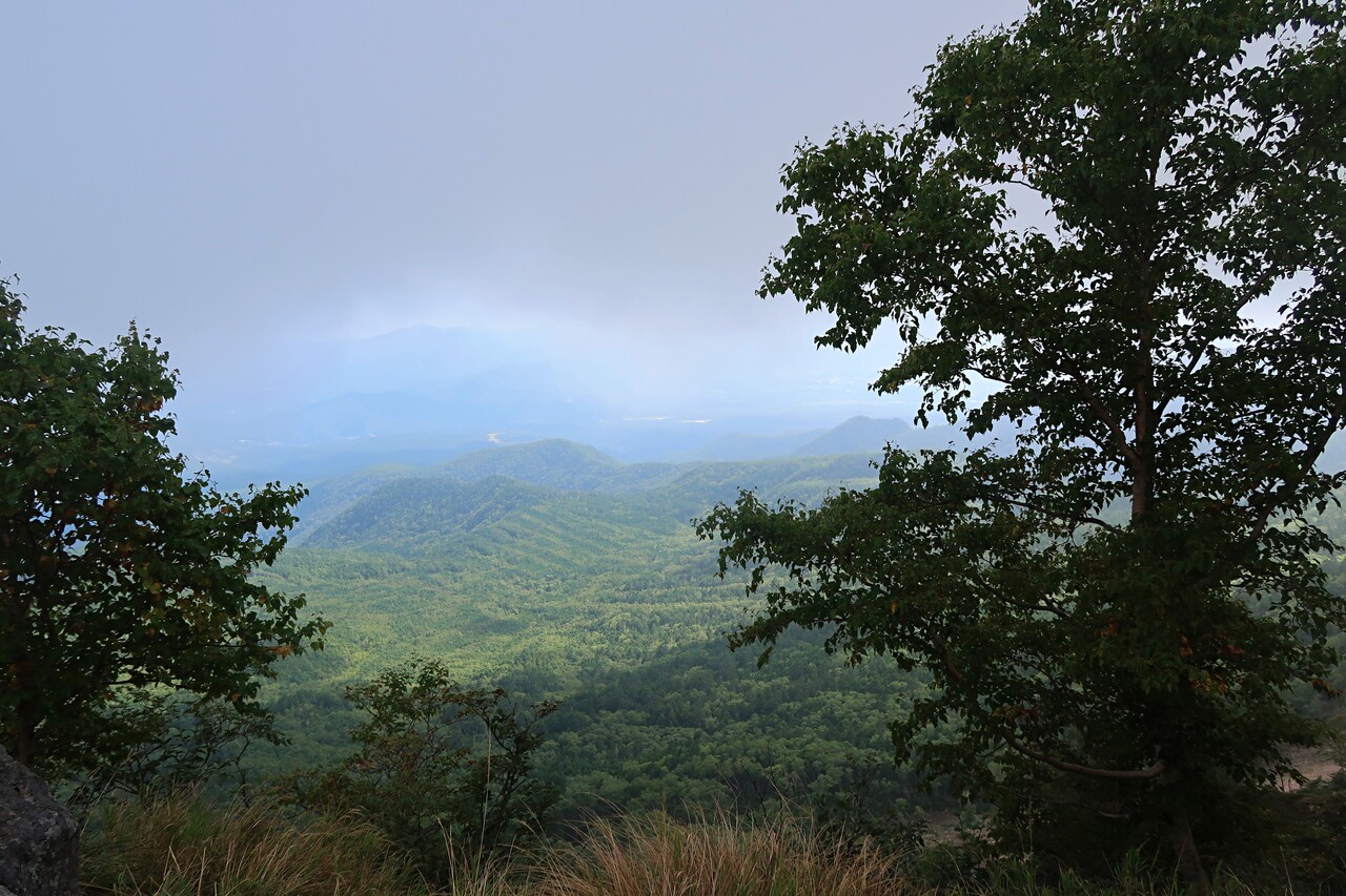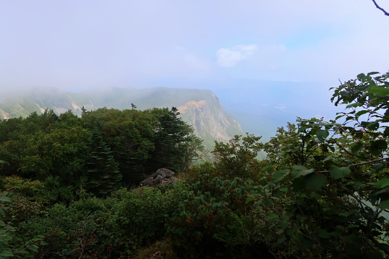 霧に閉ざされた世界が、僅かな風に揺らぎ、一時だけ開いた窓のように山の姿を覗かせた。 その一瞬の輝きが、すべての登りを報いてくれる。
