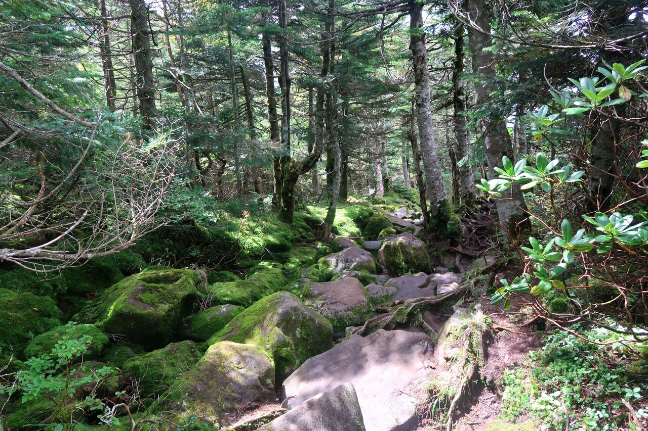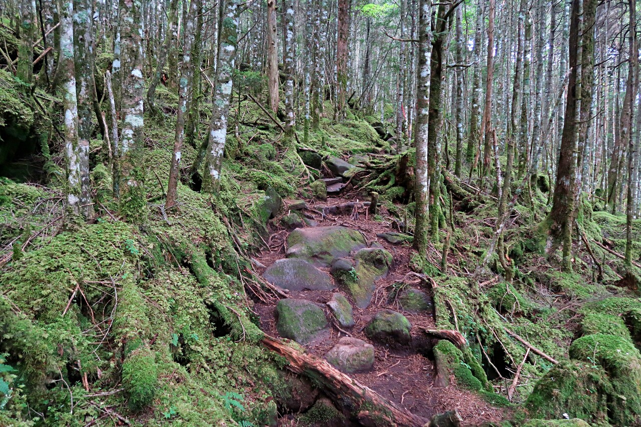 スタートはトップだったのかな? 静寂に包まれた苔むすシラビソ林の登山道をゆっくりと登る🌲