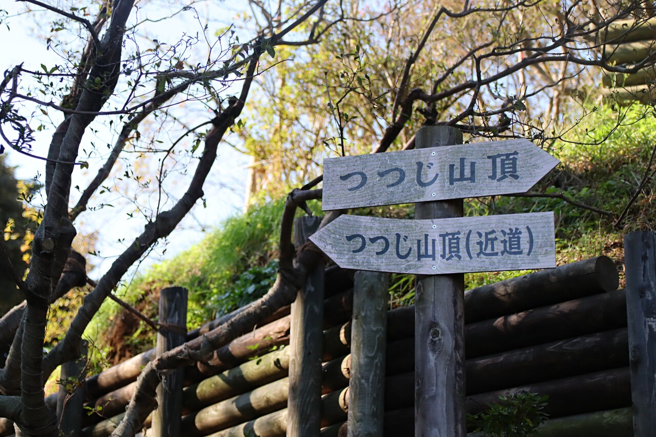 つつじ山頂の道標に従い遊歩道を登って行く。