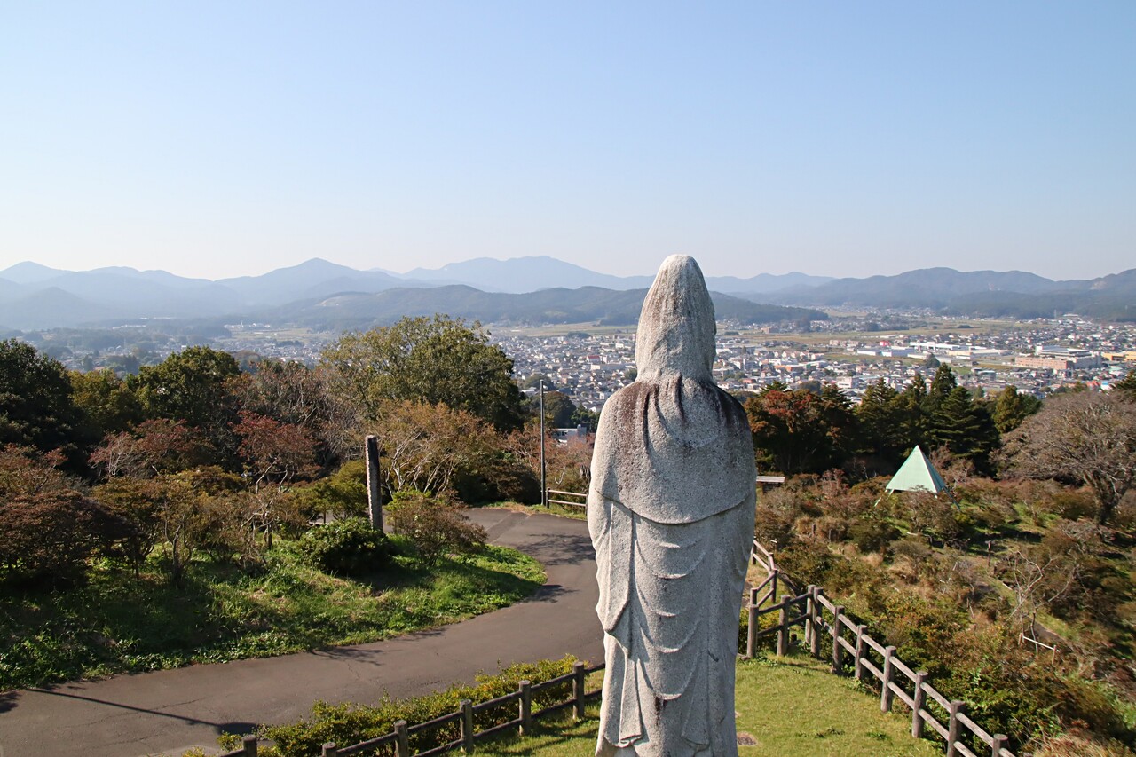 見えて来たのは富士山(標高143m)山頂に建立されている身代わり観音。 ん!何となく見覚え有るな・・・🤔 記憶は定かでないけど、大分昔に来たことあるかも?