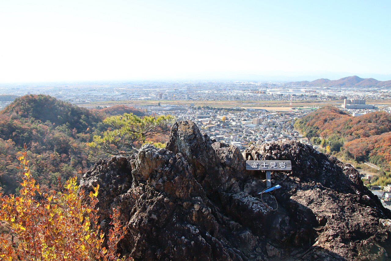 広角に浅間山~榛名山。 富士山は周りの木が伸びて見えず。