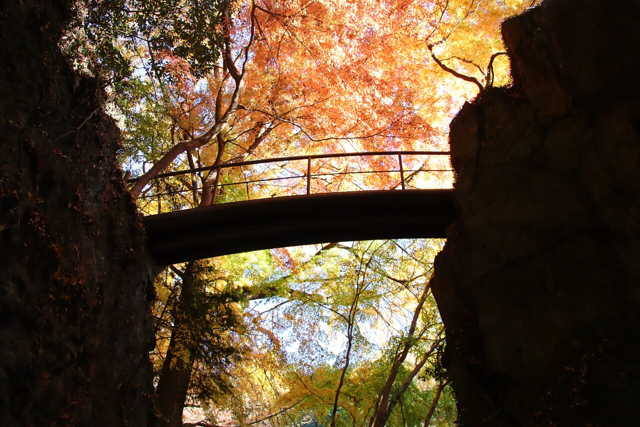 岩と岩の間に架けられた天高橋。 葛飾北斎「雲のかけはし」のモデルとなった事でも有名である。