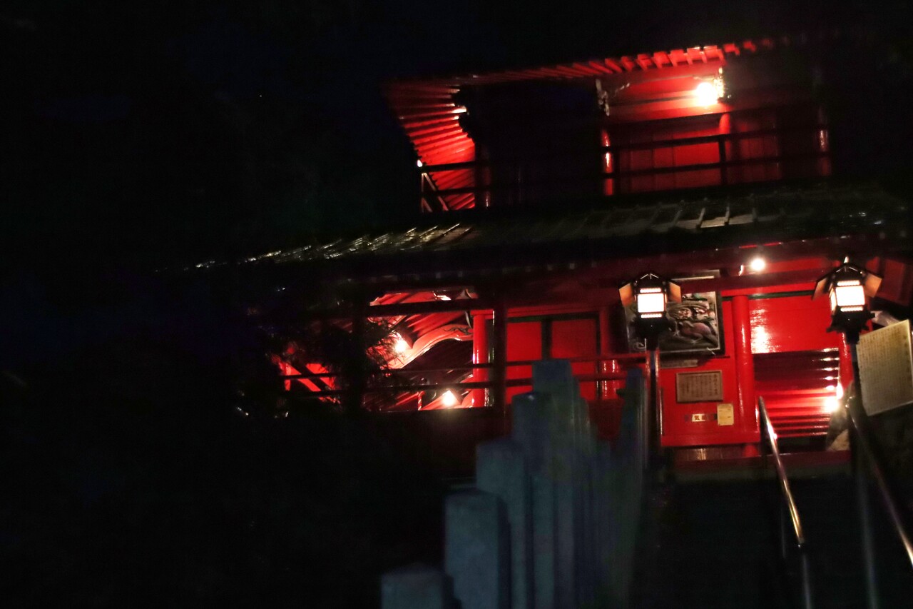 夕方に家を出て佐野市の出流原弁天池、磯山弁財天のある磯山公園までやって来た。 ライトアップ期間は2025年11/1(土)~2026年2/8(土)まで。 時間は17:00~22:00。 無料駐車場(5台)と🚾あり。 まずは仄明かりを頼りに948年(平安時代)創建の磯山弁財天に登る。