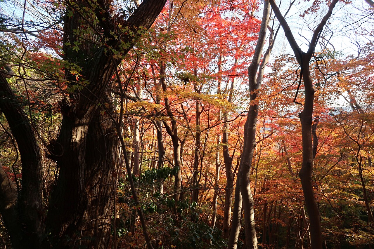前回の山行で紅葉の見納めと思っていたが、色づきの遅い地割周辺は12月上旬の今が最盛期。