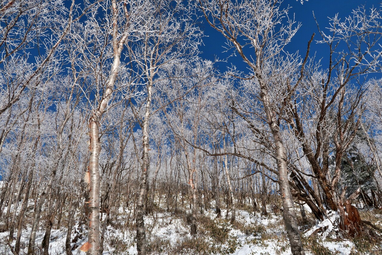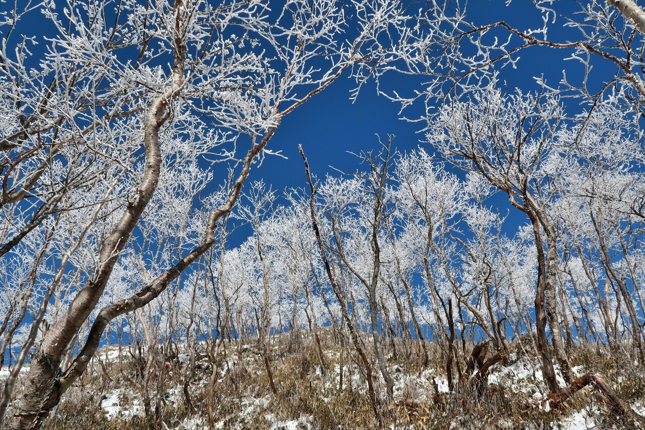 さて、気が抜けない下山路ですが、霧氷を楽しみながら戻りましょうか👍