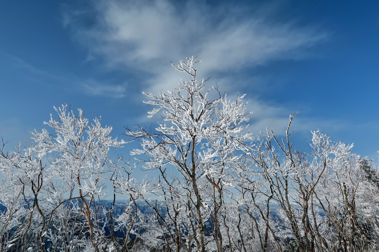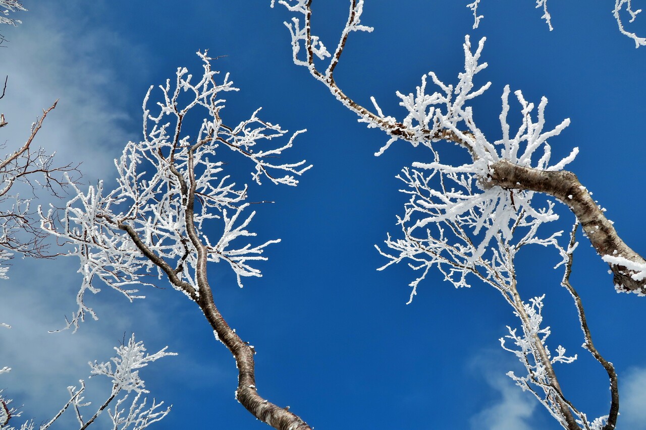 そして、青空とのコントラストが美しい霧氷ゾーンに突入✨