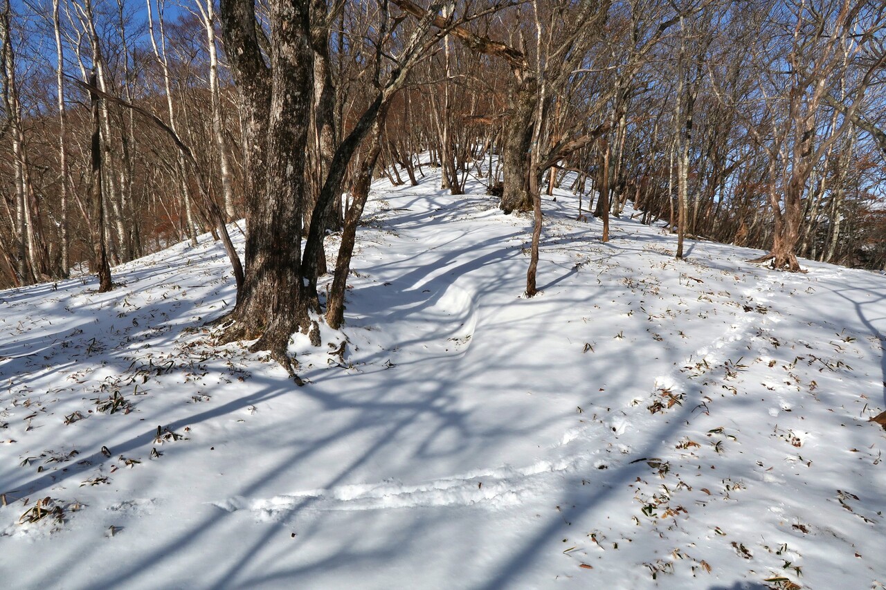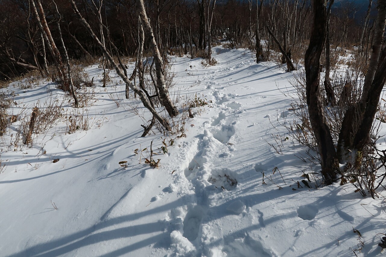 積雪❄️は前山直下の急登で膝上、釈迦ヶ岳直下で踝以上膝下未満と言ったところか。