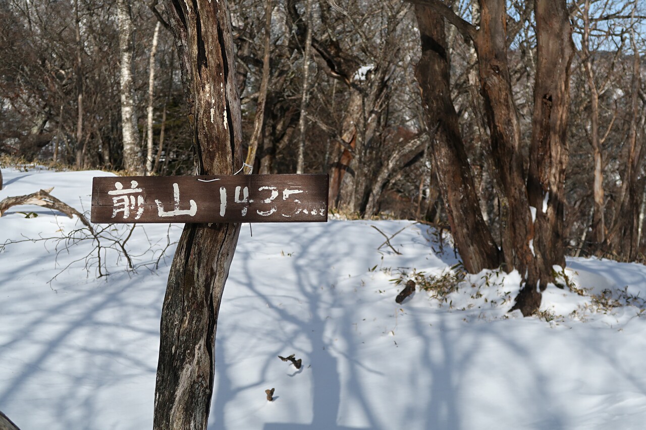 第一撤退ポイントの前山直下の急登を膝ラッセルでやり過ごし、どうにか前山に到着。