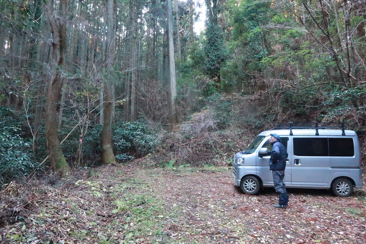 林道終点で再会した軽ワゴンの方はイノシシ用の罠を確認に来たとの事。