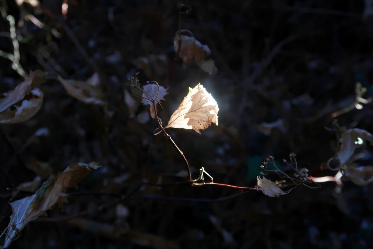 木漏れ日に輝くコアジサイの葉。