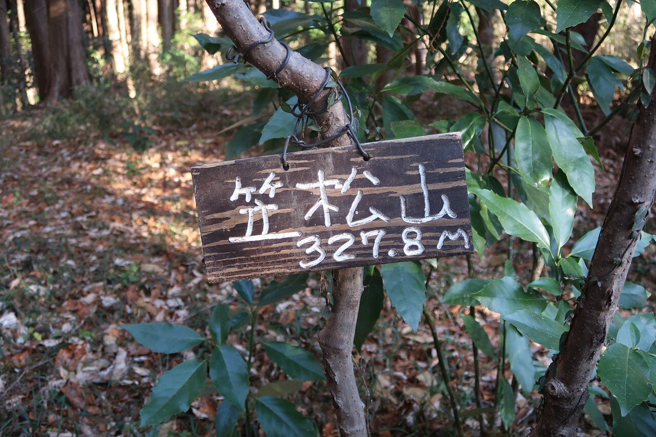 林道終点から10分程で笠松山山頂(327.8m)に到着。