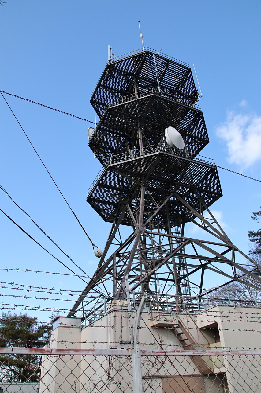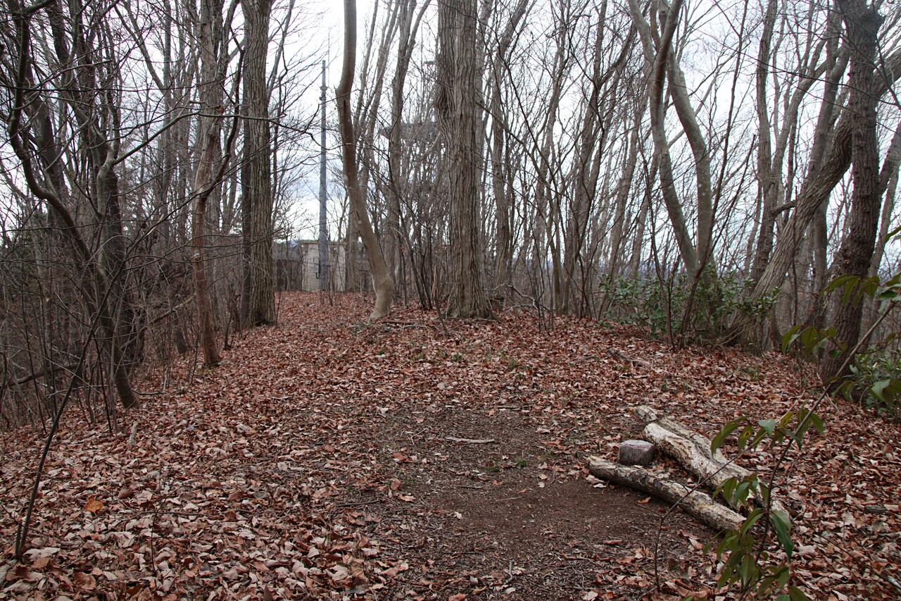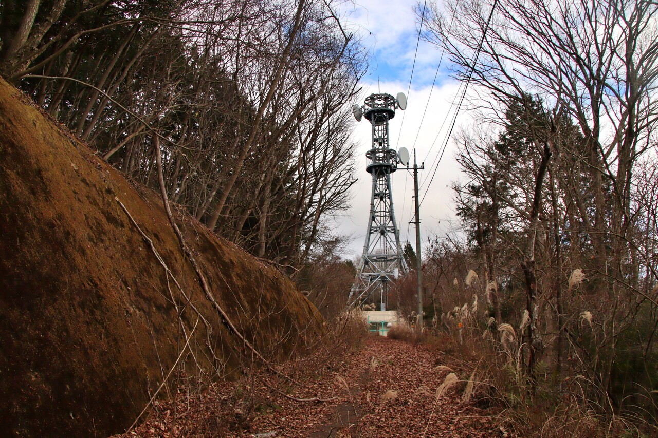 東電の電波塔手前を左に折れ山頂への尾根に取り付く👈