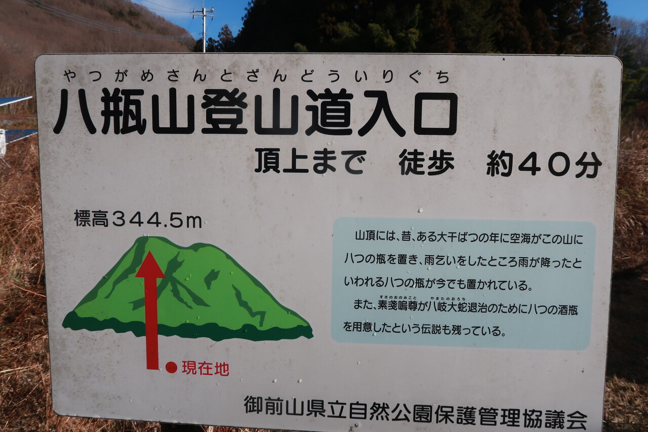 ※日時コース:12/29(月)、駐車地(8:48)~登山口~八瓶山(9:46)~ゲート~花香月山(12:03)~駐車地(13:00)