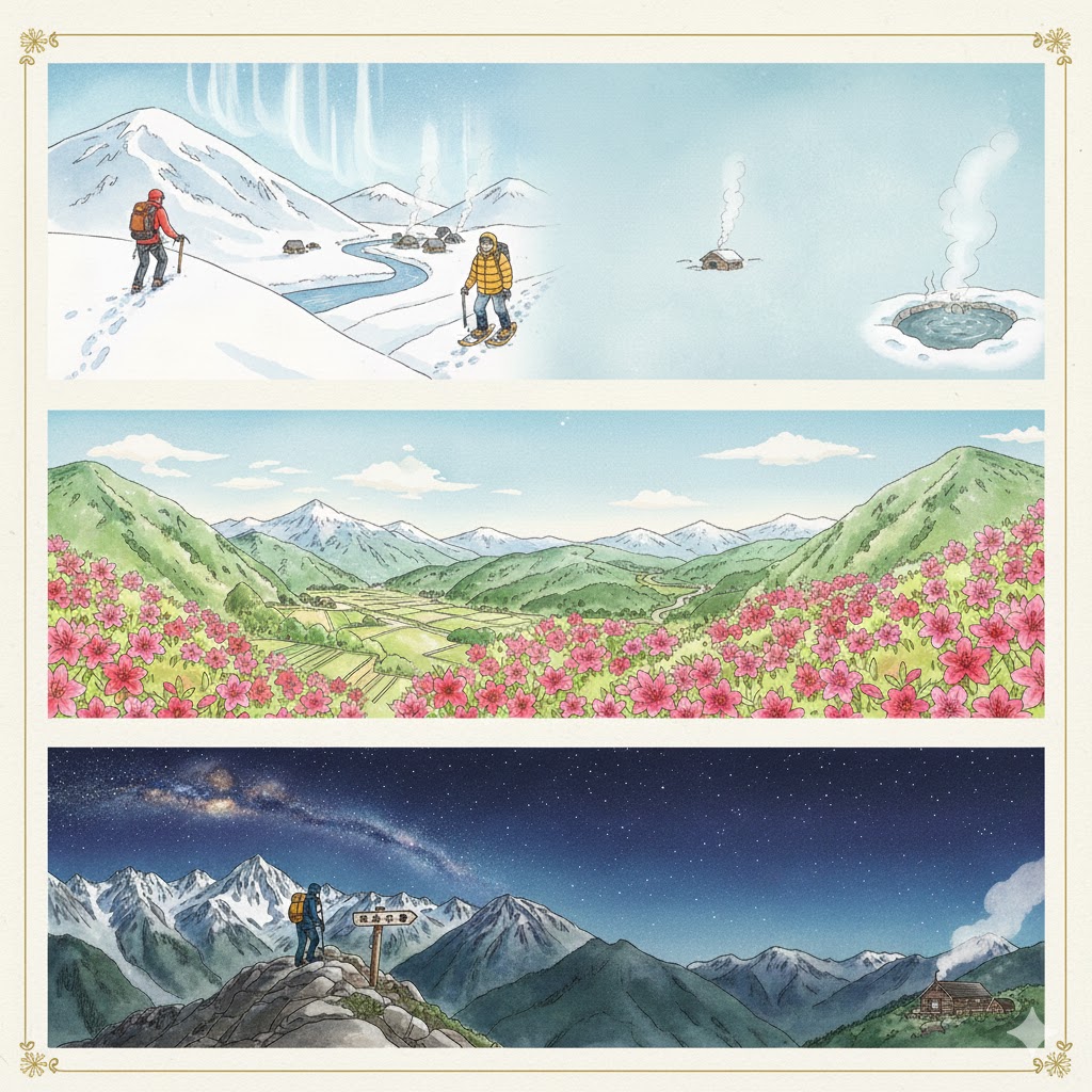 メモ: 片道282kmは長丁場。前夜泊して、朝一番の電気バスや登山開始に備えるのが現実的です。天の川撮影(星空)のチャンスもここが一番高いです。
